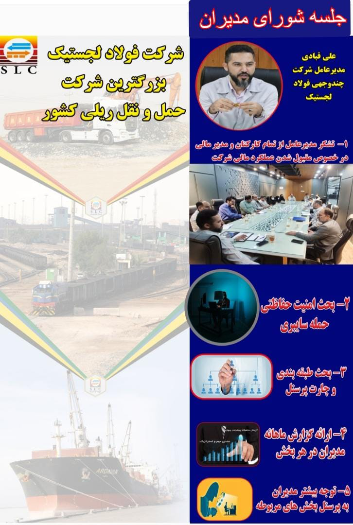 جلسه شورای مدیران شرکت فولاد لجستیک برگزار شد.