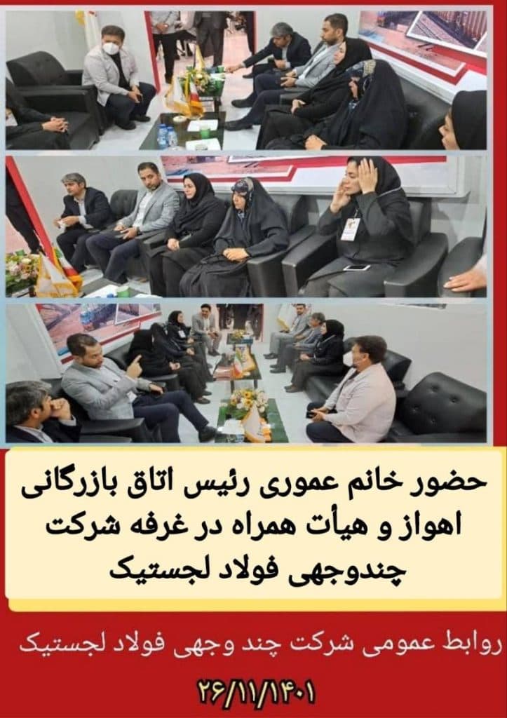 حضور خانم عموری رئیس اتاق بازرگانی اهواز و هیأت همراه در غرفه شرکت چند وجهی فولاد لجستیک