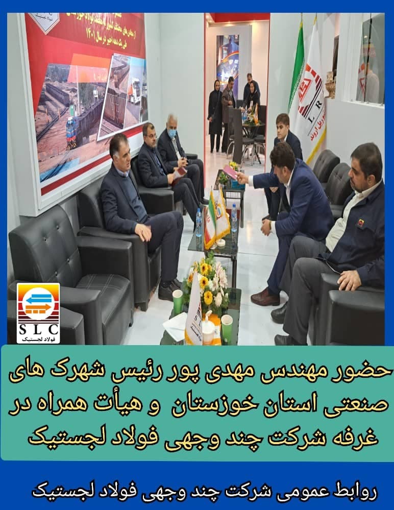 حضور مهندس مهدی پور رئیس شهرک های صنعتی استان خوزستان و هیأت همراه در غرفه شرکت چند وجهی فولاد لجستیک