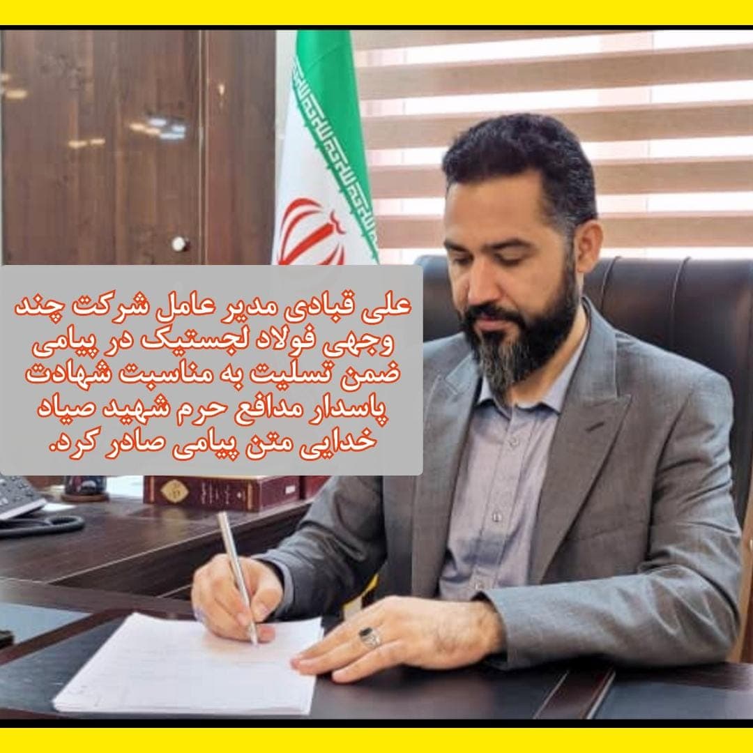 علی قبادی مدیر عامل شرکت چند وجهی فولاد لجستیک در پیامی ضمن تسلیت به مناسبت شهادت پاسدار مدافع حرم شهید صیاد خدایی متن پیامی صادر کرد.
